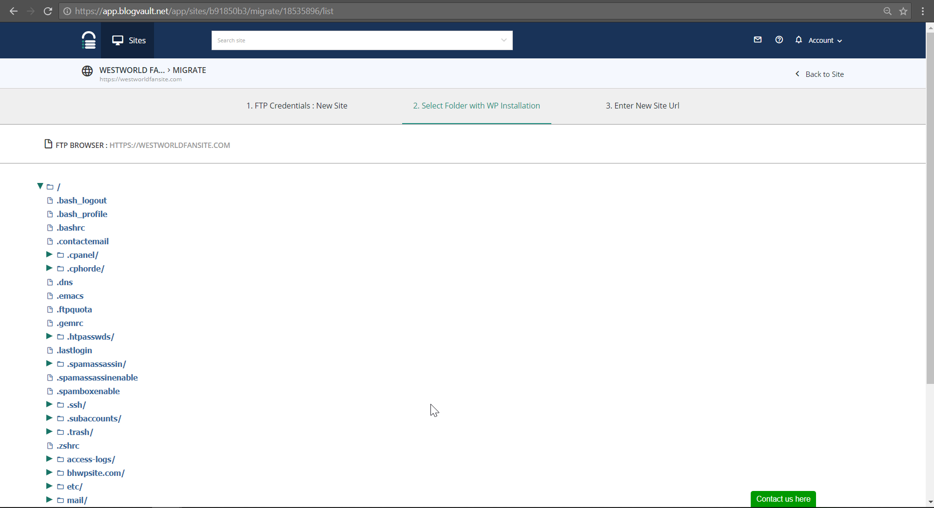After you enter your FTP credentials, you will need to Select Folder With WP Installation.
